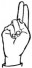 На ћирилици написано КОСТАДИН БОЖОВИЋ састоји се из 15 слова [?]. Исписано ћириличном једноручном азбуком за глувонеме: